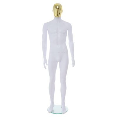 R357GD White Finish Male Mannequin with Gold Head Design