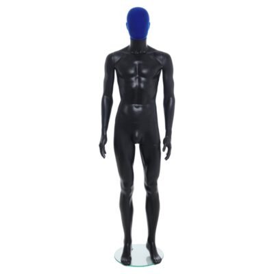 R358BP Black Finish Male Mannequin with Blue Pile Head Design