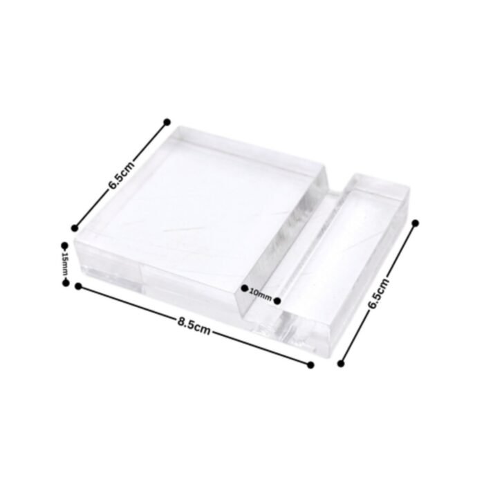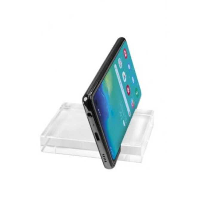 Present smartphones clearly and professionally with this 10mm slotted mobile phone display stand. Made from durable clear acrylic, it securely holds phones at the perfect angle for easy viewing. Its compact and minimal design ensures the device is the main focus while leaving space underneath for pricing or product information.