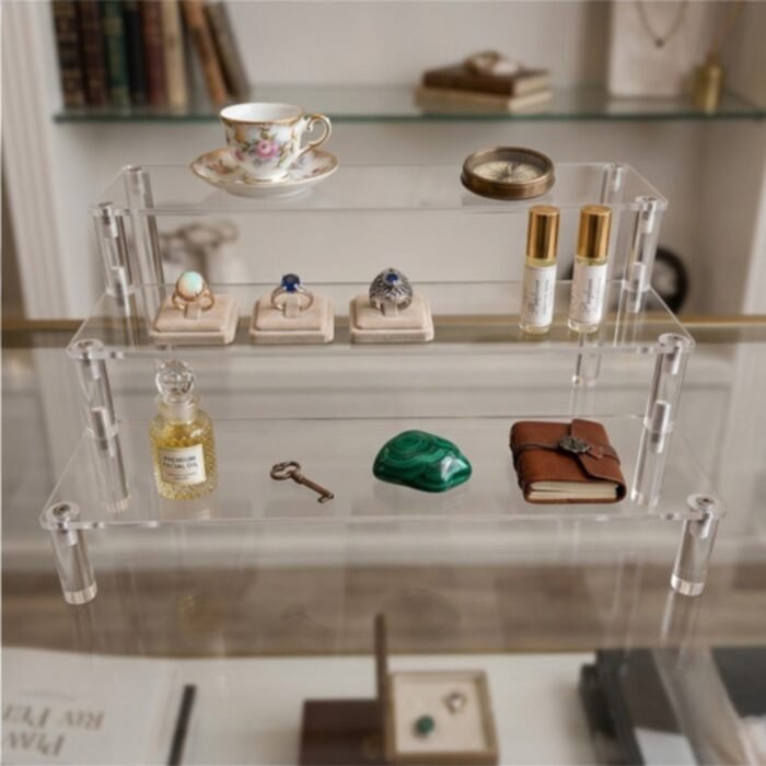 This acrylic display riser is ideal for shops, exhibitions, dressing tables, and events. It helps you create a clear and organised display by using different levels, making products easier to see. Perfect for jewellery and cosmetics in retail, or for cupcakes and treats at parties and bakeries. It also works well at home for keeping items neatly arranged while saving space.