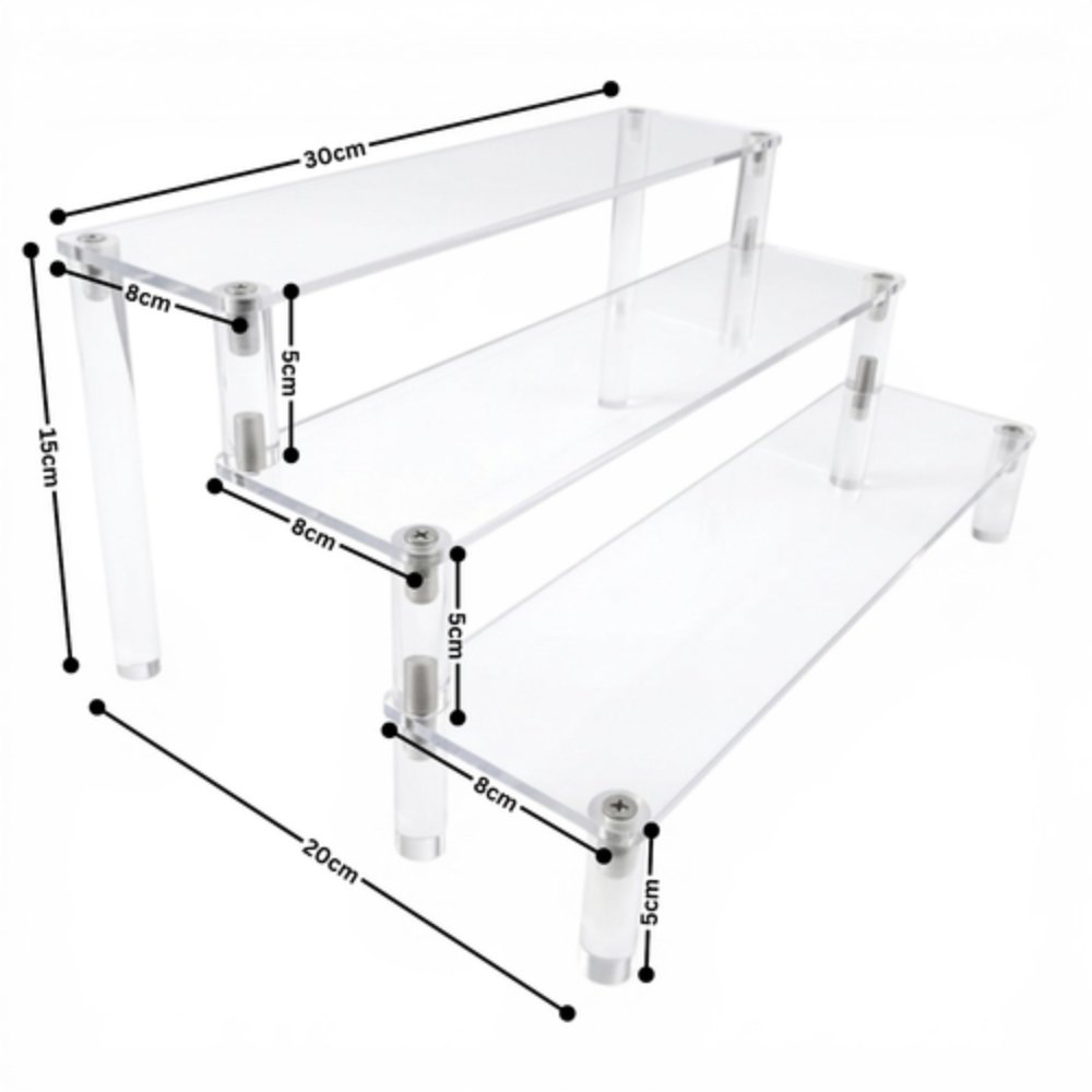 Display your products in a neat and eye-catching way with this acrylic display riser. Made from clear and strong acrylic, it gives a clean look while keeping full focus on your items. The 3-tier stepped design helps you organise products at different levels, making them easier to see and access.