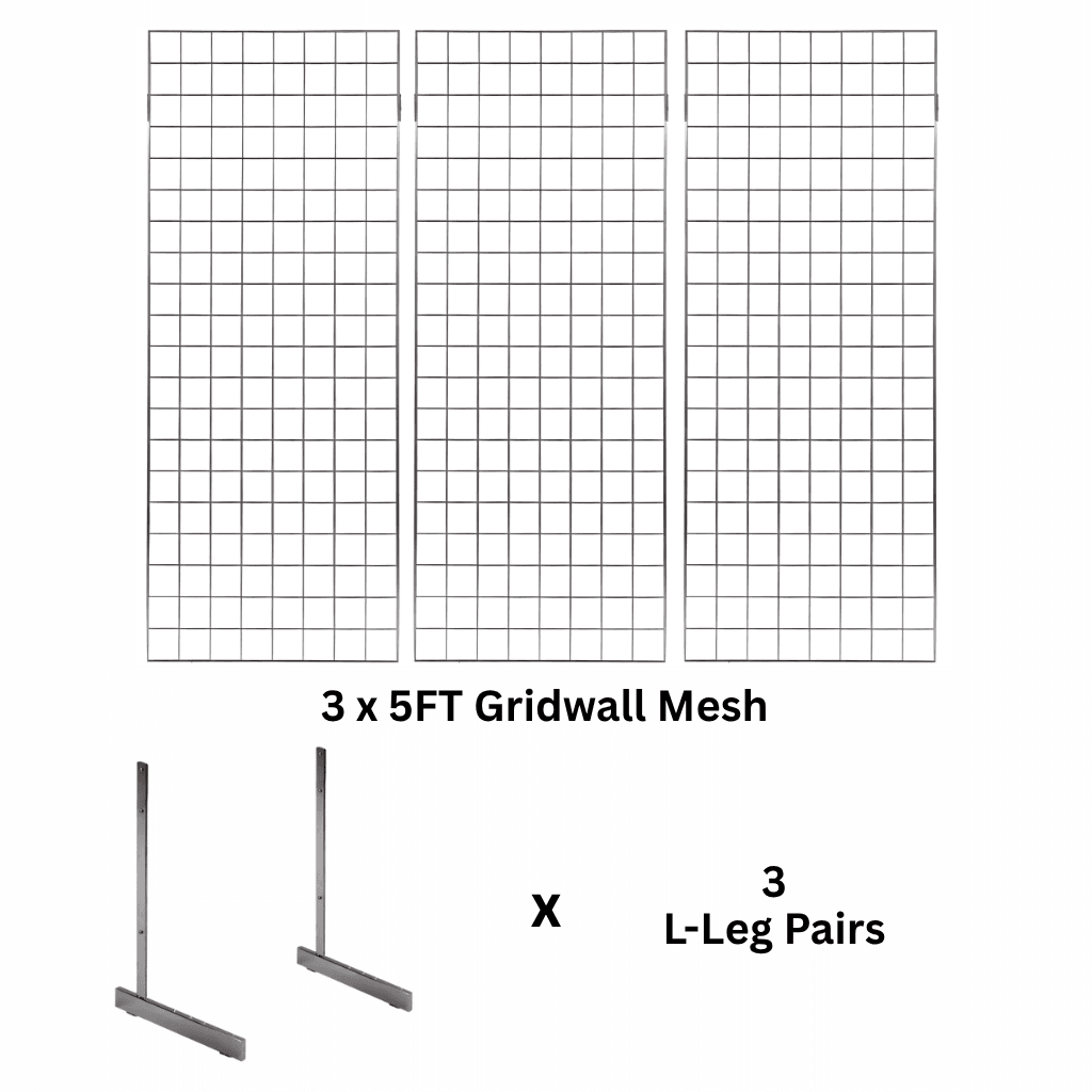 Contents 3 x 1530 mm Gridwall Mesh panel, 3 x L Legs pairs