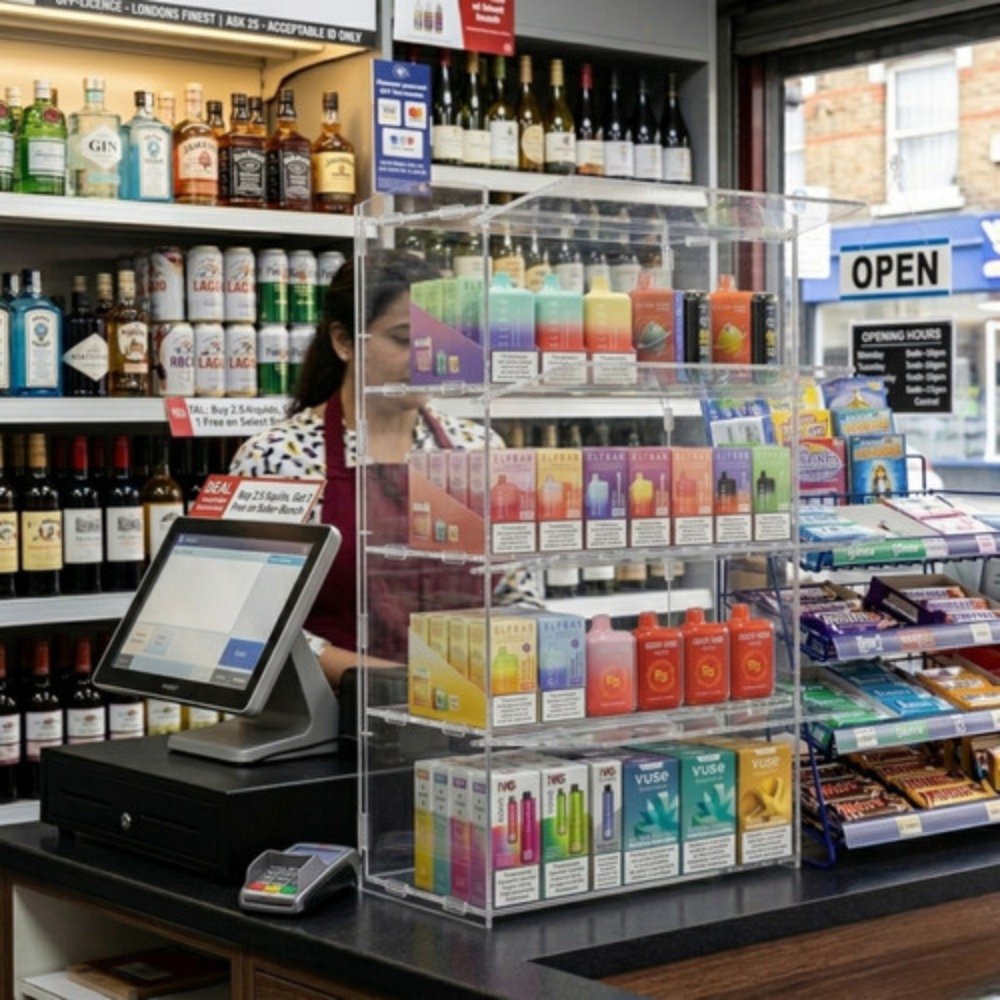 This 4 tier acrylic bakery display case is ideal for bakeries, cafés, coffee shops, restaurants, vape shops, and retail counters. It allows you to display a large variety of items such as cakes, pastries, donuts, cupcakes, sandwiches, and sweets in a neat and organised way. The multi-tier layout improves product visibility and presentation, helping attract customer attention and increase sales. It is also suitable for displaying vape devices, cosmetics, and small retail items.