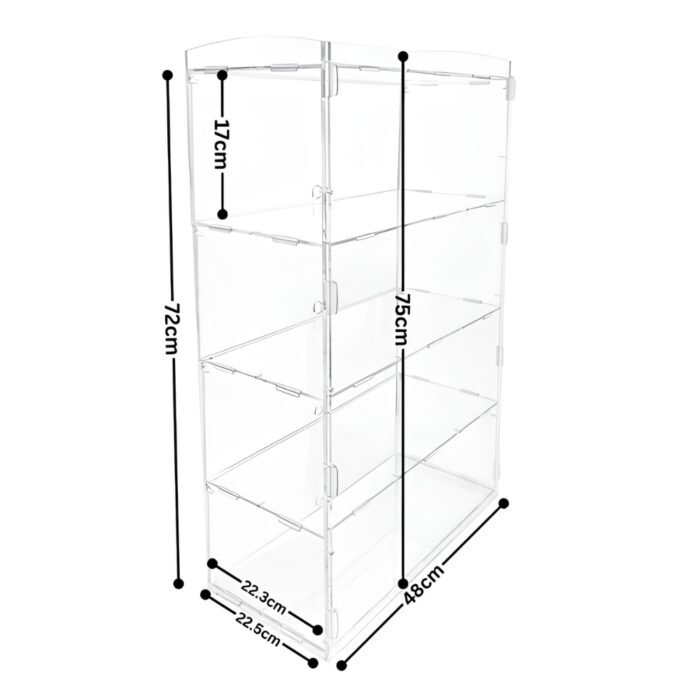 Maximise your display space with this 4 tier clear acrylic bakery display case stand. Made from strong 5mm thick acrylic, it provides a durable and practical solution for showcasing a wide range of products while keeping them protected.