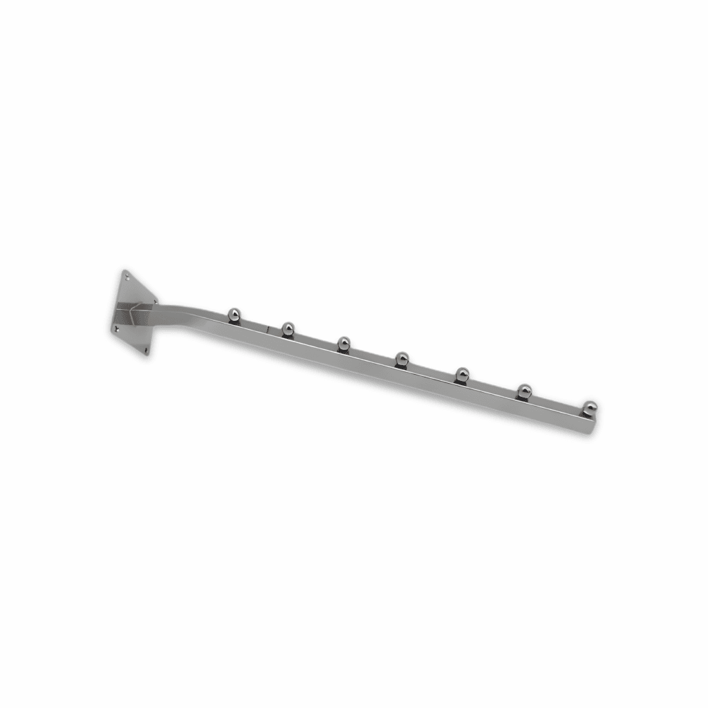 The Chrome 7 Ball Sloping Arm Wall Mounted is a durable and elegant solution for displaying garments, accessories, and merchandise in retail stores, boutiques, and showrooms. Designed with a sleek chrome-plated finish, this sloping arm enhances the professional look of your display area while providing reliable support for hanging items such as coats, shirts, and dresses.