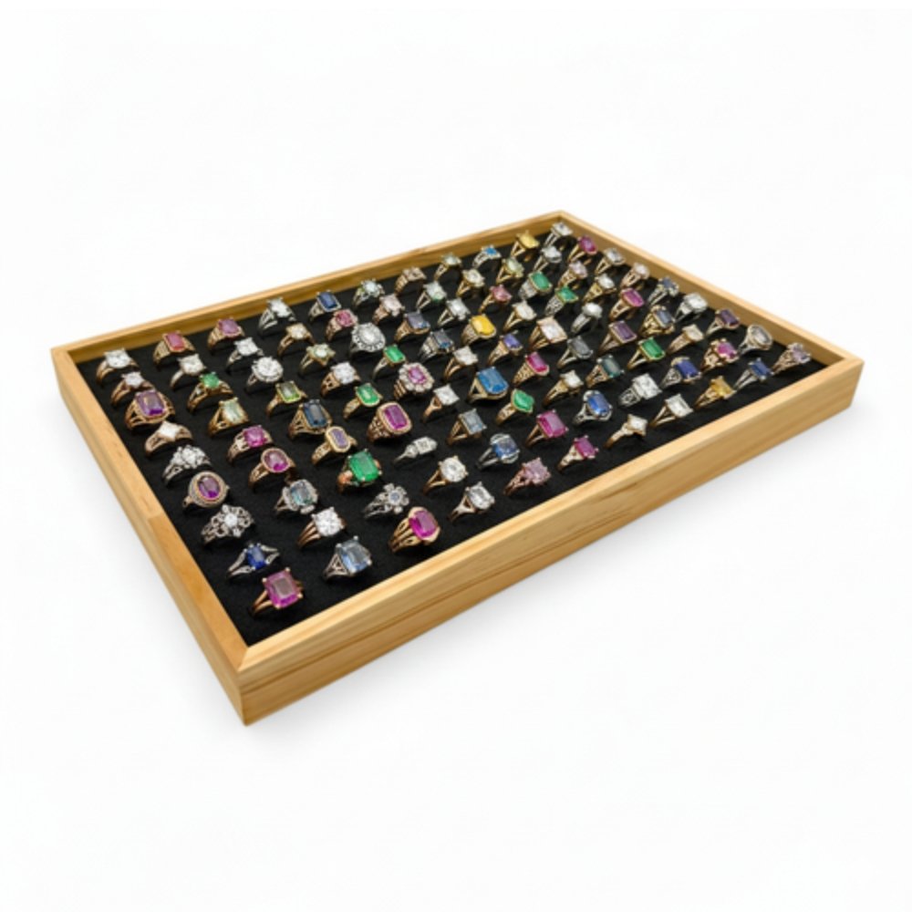 Organise your jewellery neatly with this 100-grid drawer organizer featuring a durable bamboo frame and soft grey velvet lining. Designed to separate earrings, rings, and small accessories, it keeps each item visible and easy to access.