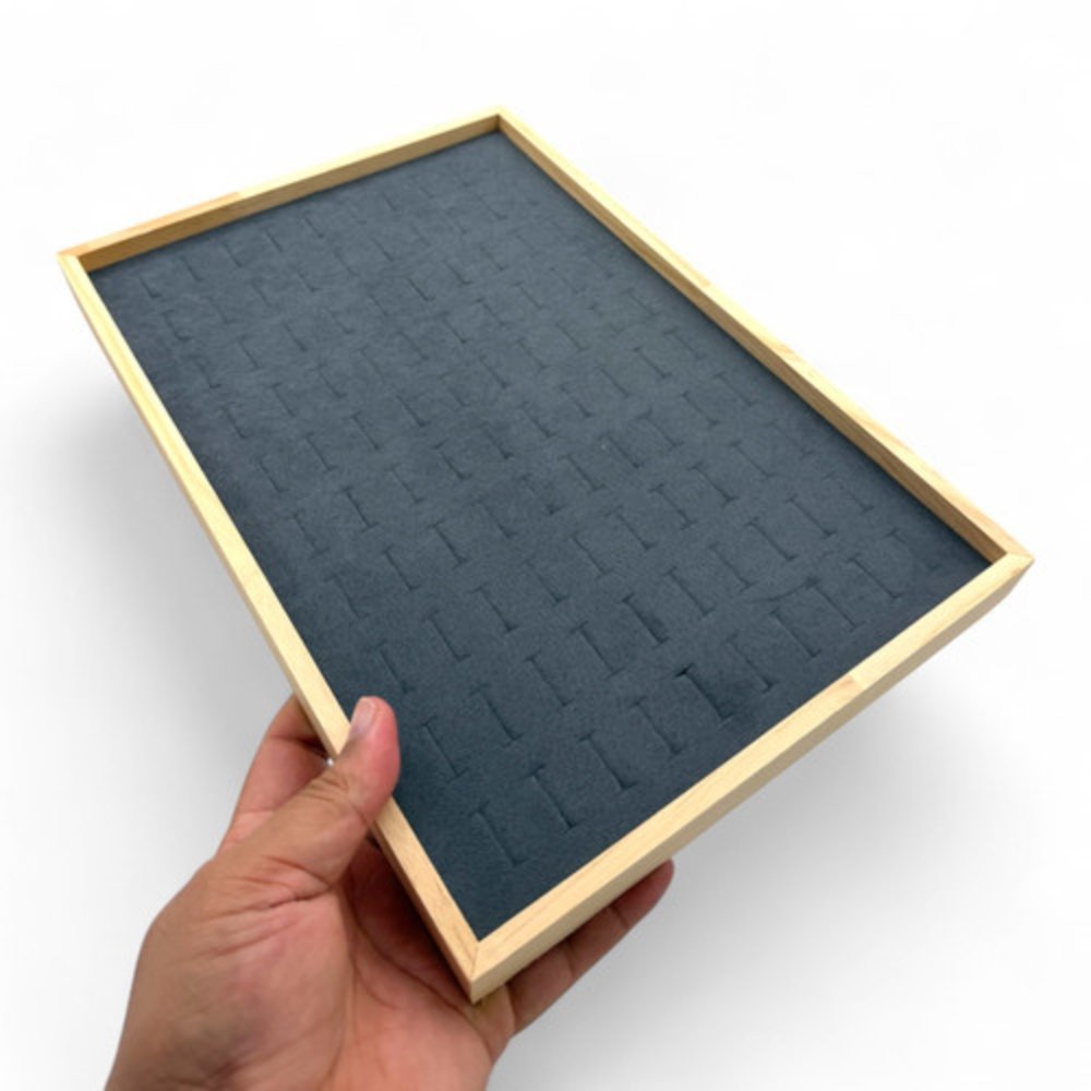 The strong bamboo structure ensures long-lasting use, while the soft velvet surface helps protect delicate pieces from scratches and damage. Its slim design fits easily into drawers or display cases, making it suitable for both retail and home use.