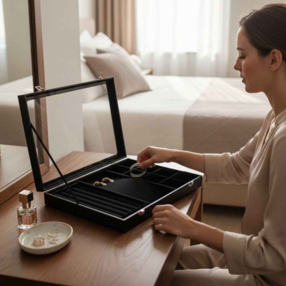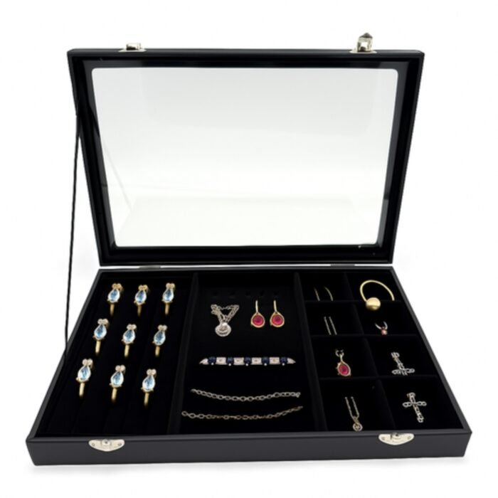 Ideal for home use, jewellery shops, boutiques, and trade displays, this jewellery box keeps chains, rings, and earrings neatly separated and easy to access. It helps prevent tangling, loss, and damage while improving presentation. Perfect for countertop display, drawer organisation, or showcasing collections in a professional setting.