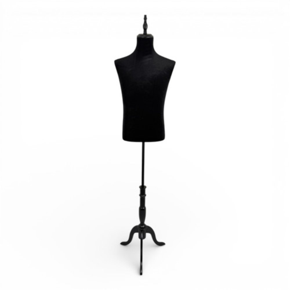 Elevate your retail presentation with this Black Velvet Male Mannequin Torso. The premium black velvet finish not only adds a touch of luxury but also provides a non-slip surface that holds garments perfectly in place, making it ideal for high-end photography and shop displays.