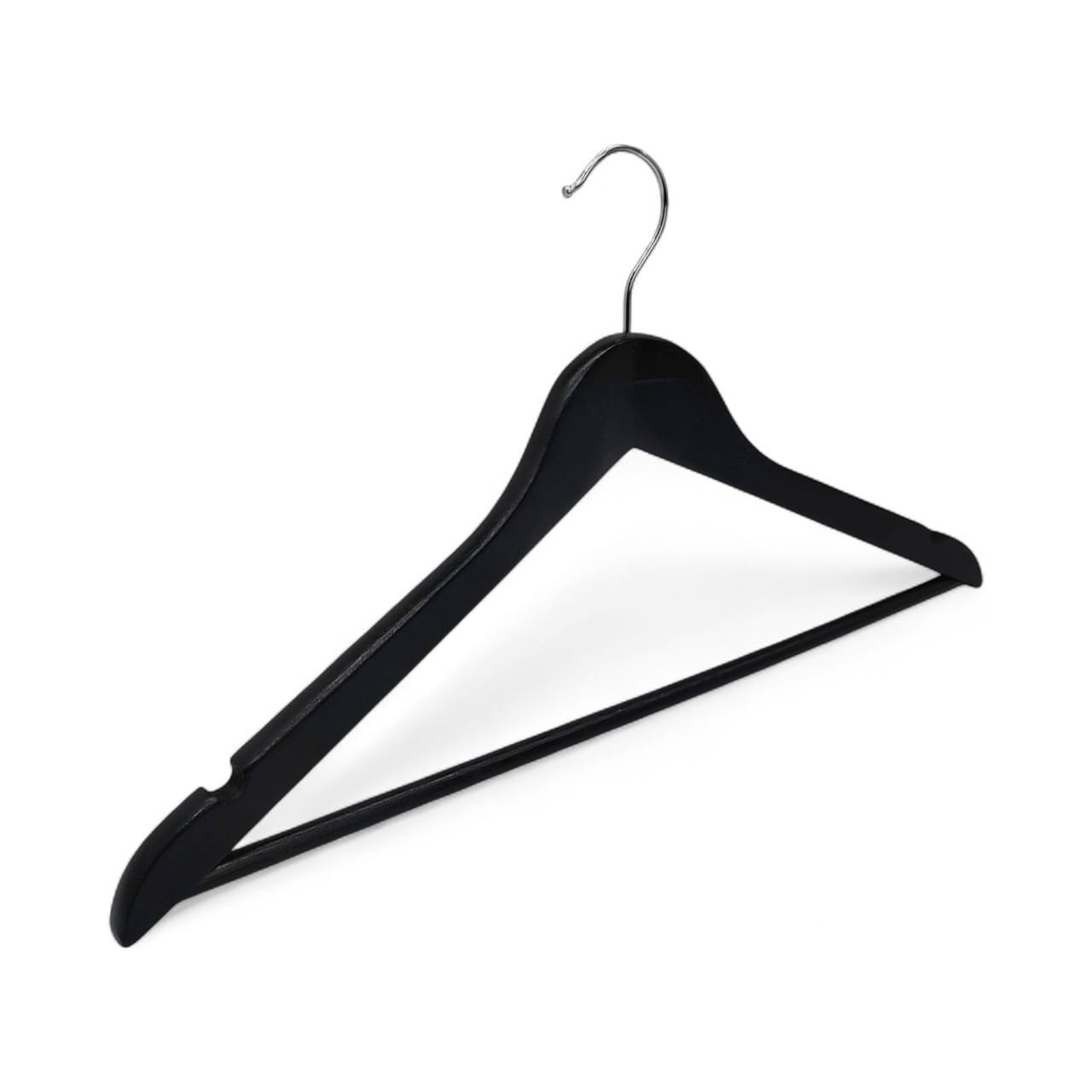 Black Wooden Hangers with Trouser Bar and Shoulder Notches – 44.5cm