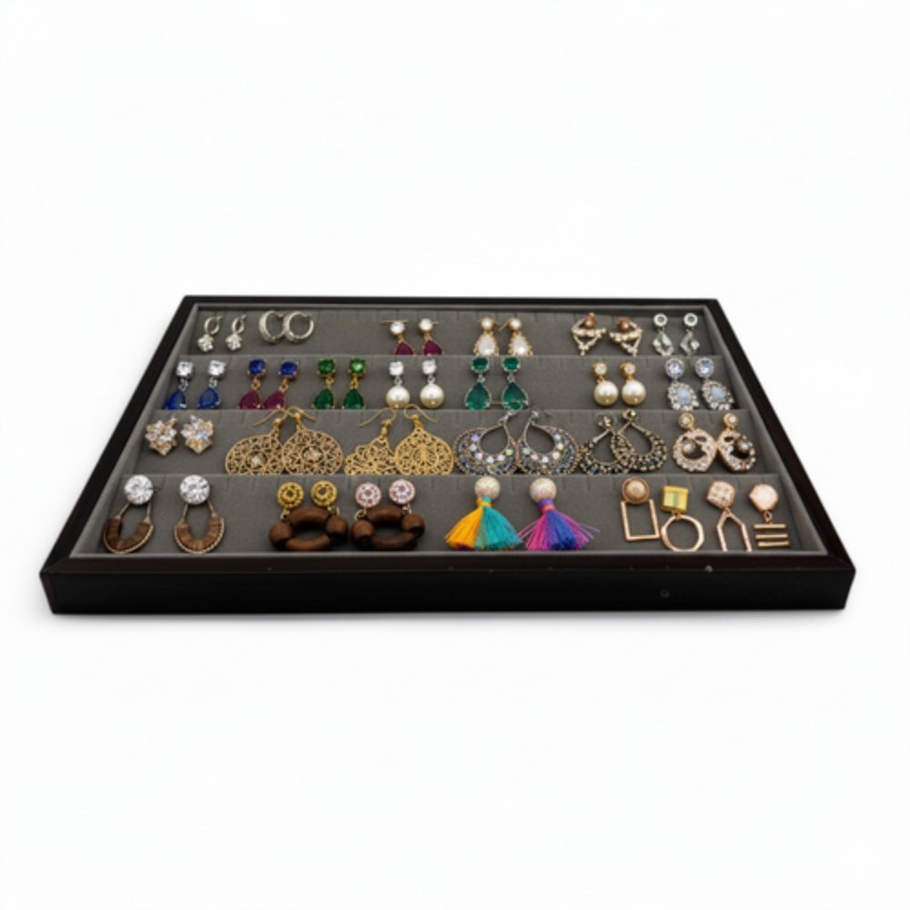Ideal for retail counters, jewellery shops, craft fairs, workshops, and home use, this earring display tray keeps your collection organised and easy to browse. It helps prevent tangling, loss, and damage while offering a tidy and attractive presentation. Perfect for showcasing products in stores or keeping personal collections neatly arranged at home.