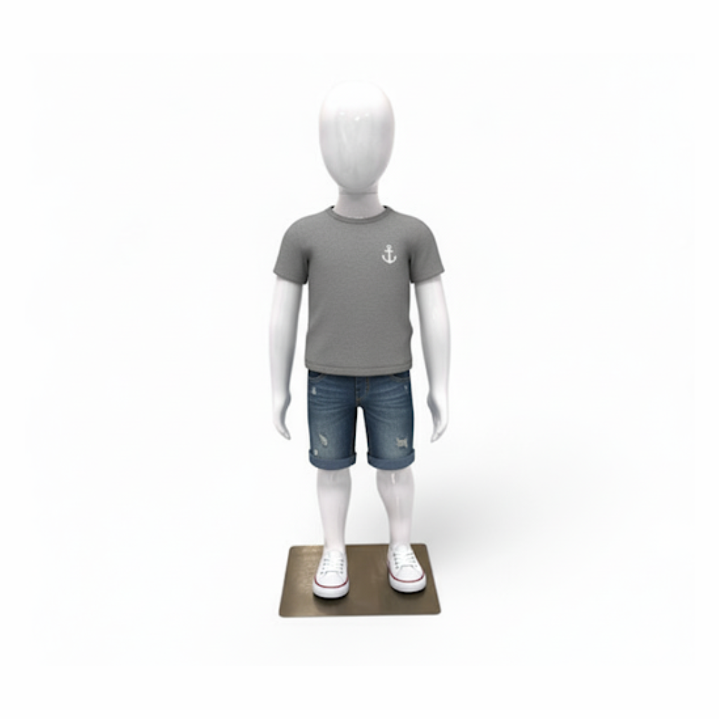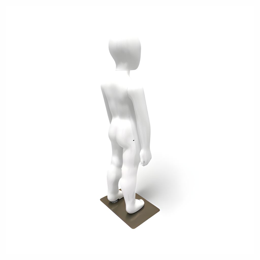 Lightweight and easy to assemble, this kids mannequin can be quickly repositioned to refresh displays and enhance customer engagement. Its faceless design ensures that the focus remains on the clothing, creating a clean and professional retail presentation.