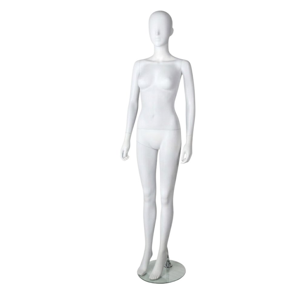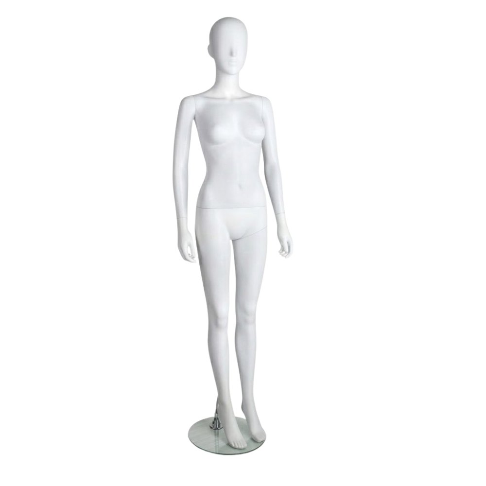 This GAF301 female mannequin is designed to present clothing, accessories, and jewellery in a clean and professional way. With its matt white finish and abstract head, it creates a modern display that keeps the focus on your products.