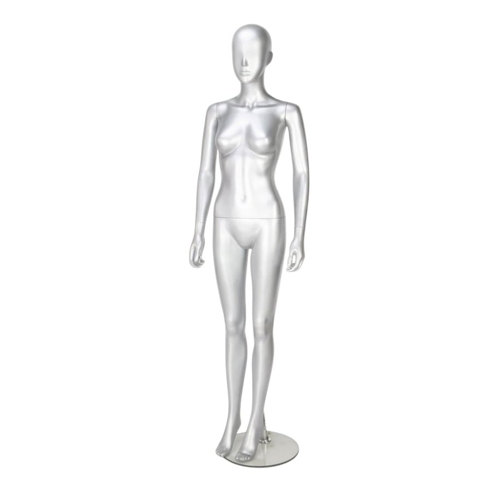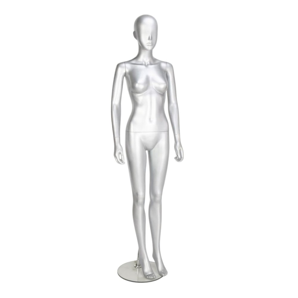 This GAF351 female mannequin is designed to create a bold and modern display for clothing, accessories, and jewellery. The gloss silver finish adds a premium and eye-catching look, helping your products stand out in any retail or exhibition setting.