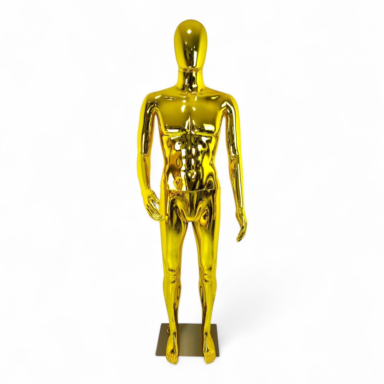 Male Plastic Display Egg Head Mannequin – Gold Glossy & Metal Base