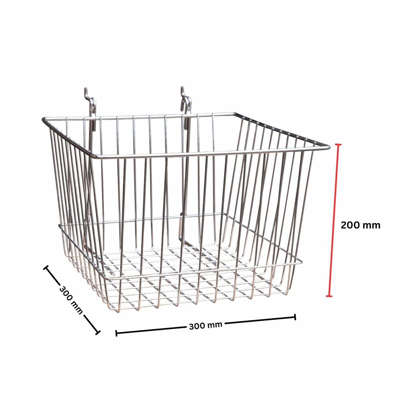 Multipurpose Basket Display for Slatwall & Gridwall Mesh – W300 x D300 x H200 mm