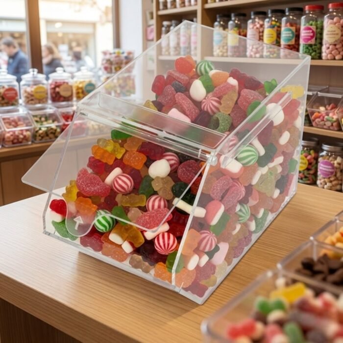 Pick N Mix Sweet Acrylic Dispenser Bin – Clear Display Holder for Unwrapped Sweets