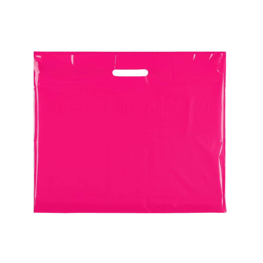 Add a pop of vibrant color with our plastic hot pink carrier bags—ideal for boutiques, gift shops, parties, and takeaway packaging. This bulk pack includes plain hot pink carrier bags made from strong LDPE and fitted with die-cut handles for easy carrying. The bright pink gloss finish adds style without branding, offering cost-effective, standout presentation. These hot pink plastic shopping bags are lightweight, reusable, and recyclable.
