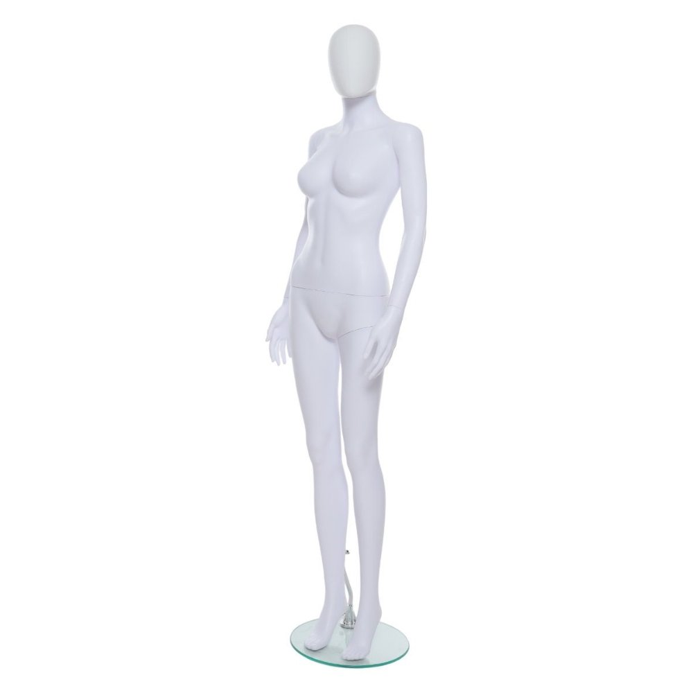 Perfect for clothing stores, boutiques, showrooms, and exhibitions, the R305 Matt White Female Mannequin is ideal for displaying outfits, accessories, and footwear. The egg head design keeps the focus on the products, helping improve store presentation and attract customer attention.