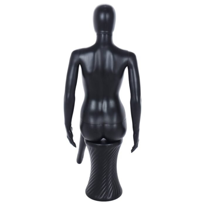 Showcase clothes, accessories, and jewellery with the R316B female sitting mannequin. This full-bodied, black finish mannequin features an egg-shaped head and comes with a sitting stool, making it perfect for retail fashion displays or home use. Its durable plastic construction ensures longevity, while the adjustable head and arms allow a variety of poses. Lightweight design makes handling and transportation effortless.