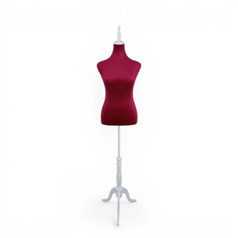 Red Velvet Female Mannequin Torso Dress Form with Wooden Stand